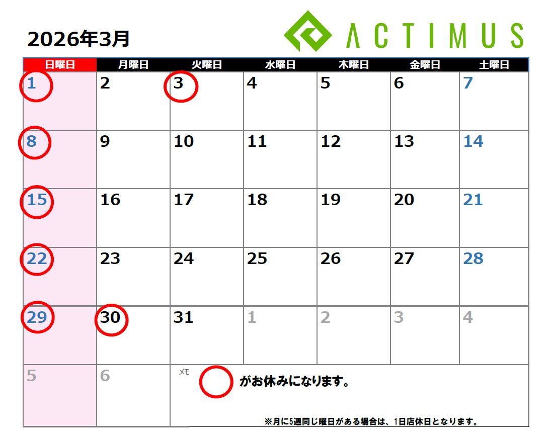 3月カレンダー