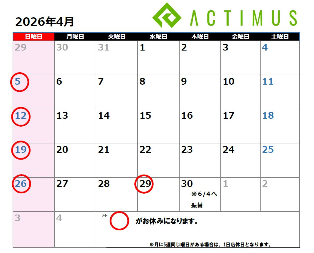 4月カレンダー